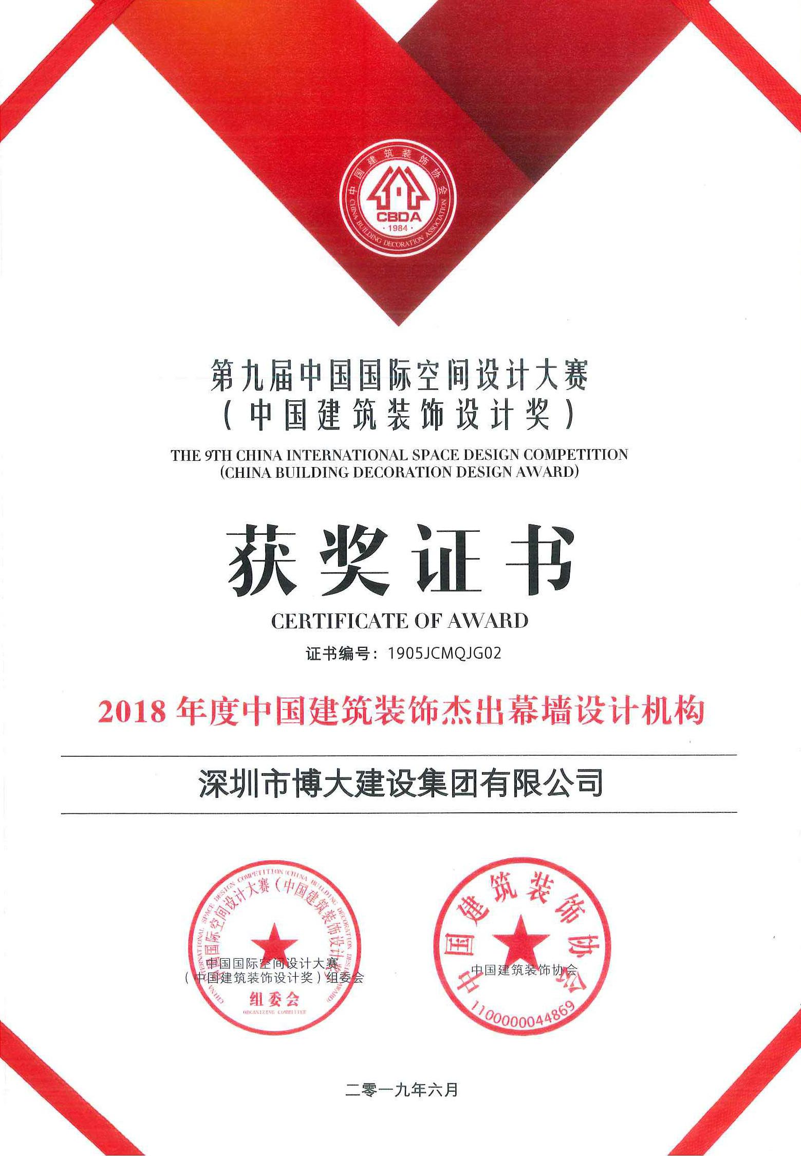 2018年度中國(guó)建筑裝飾杰出幕墻設(shè)計(jì)機(jī)構(gòu)