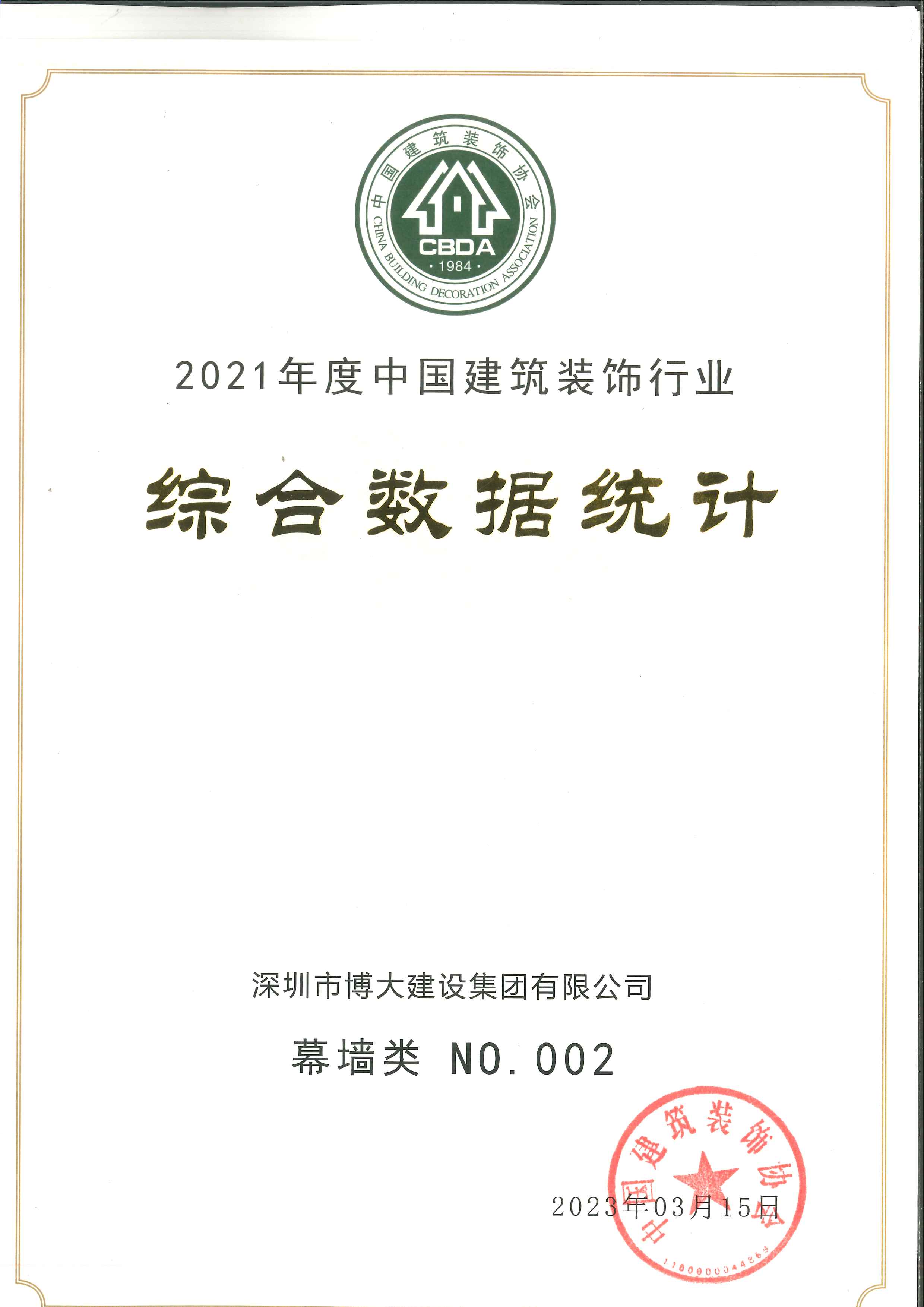 2021年度中國(guó)建筑裝飾行業(yè)百?gòu)?qiáng)幕墻類第二名