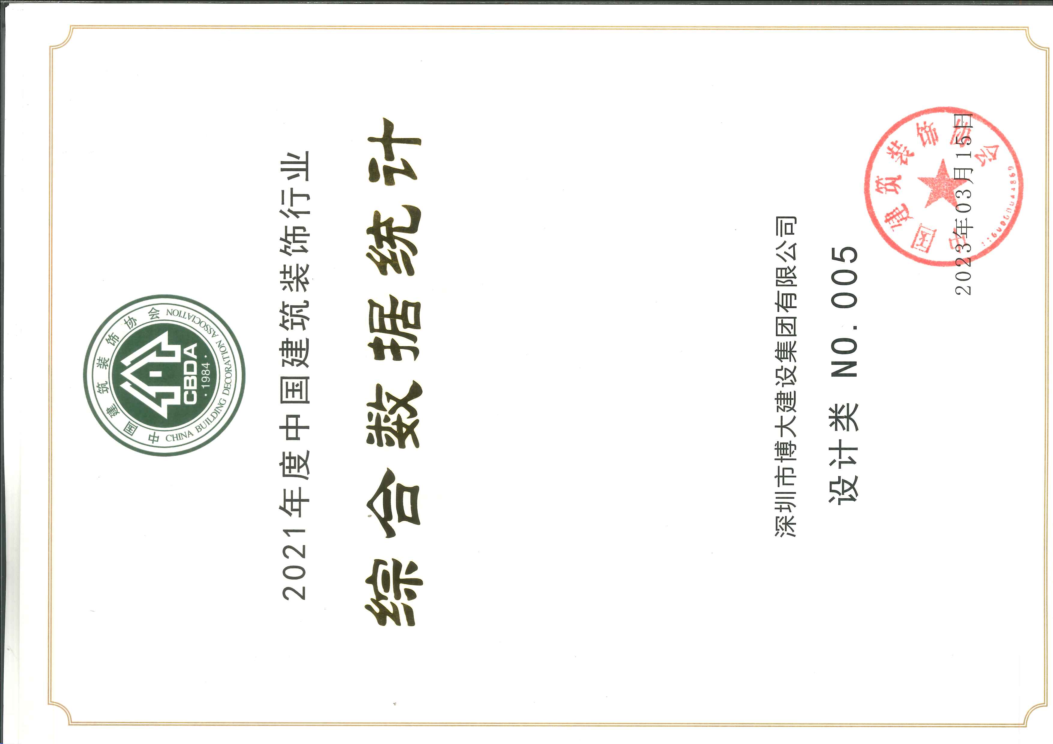 2021年度中國(guó)建筑裝飾行業(yè)百?gòu)?qiáng)設(shè)計(jì)類第五名