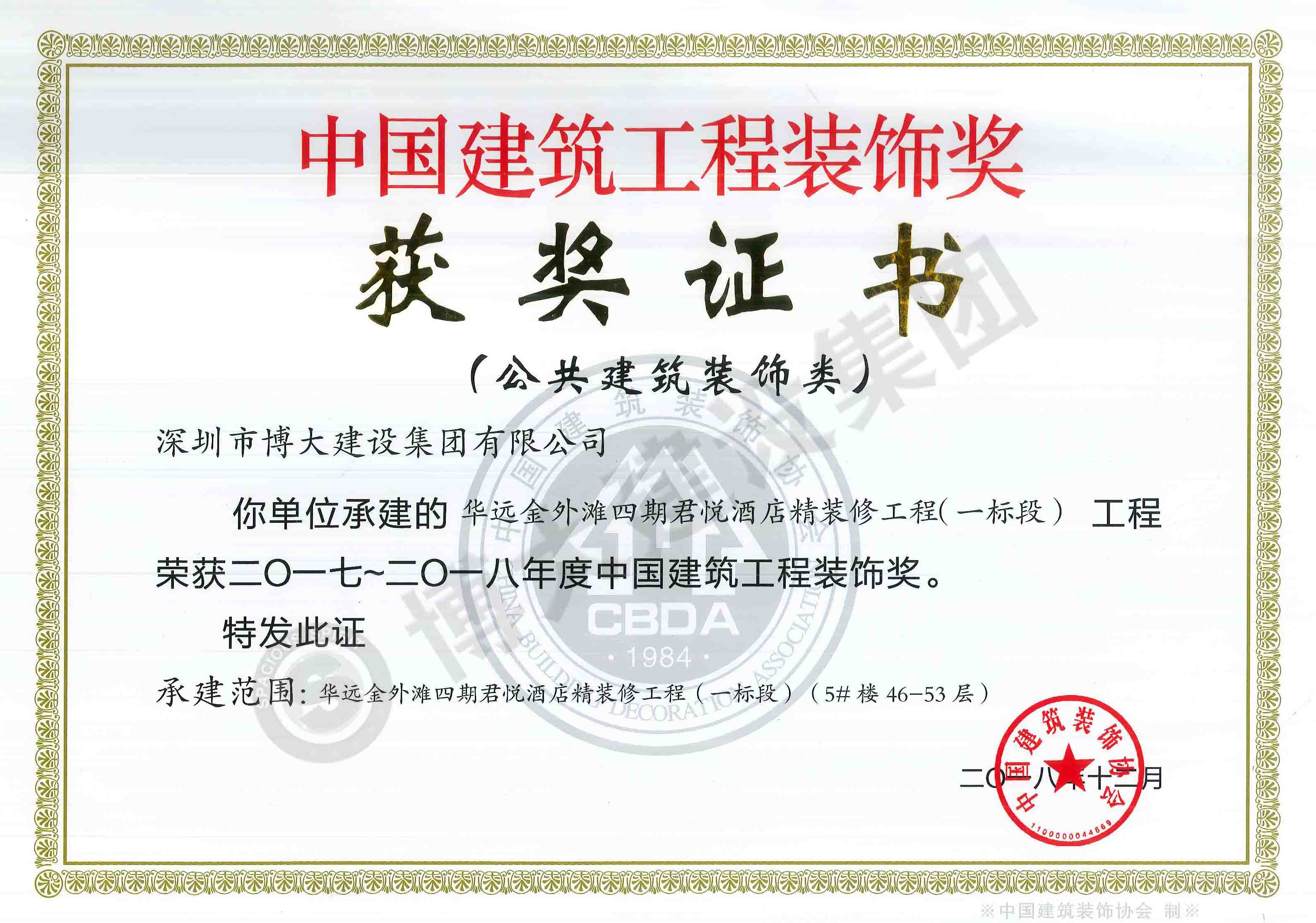 中國建筑工程裝飾獎(jiǎng)(華遠(yuǎn)金外灘君悅酒店-裝飾)