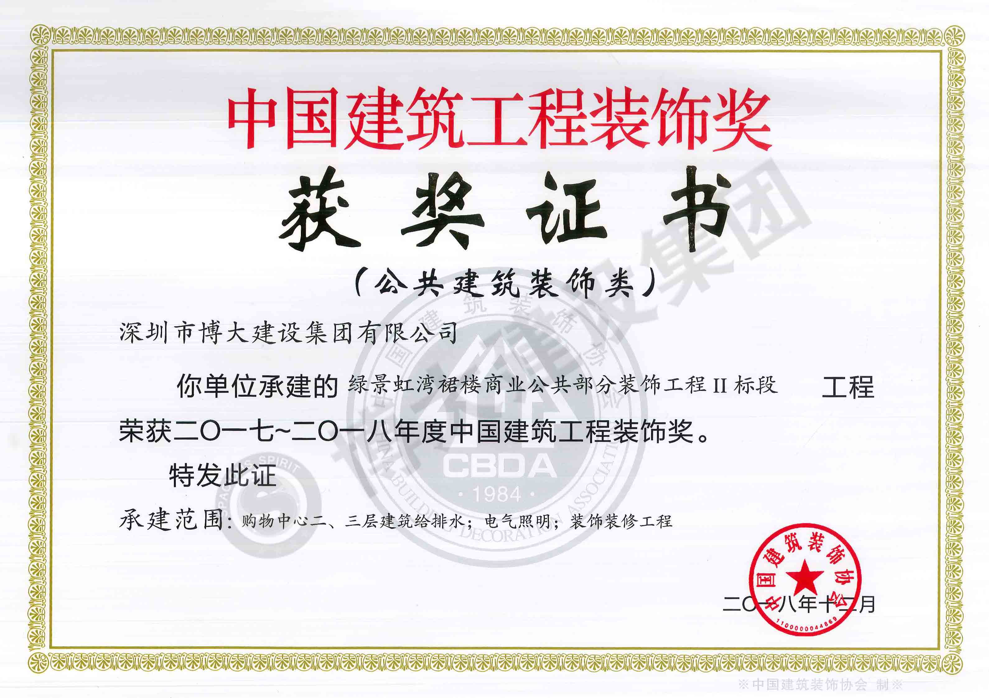 中國建筑工程裝飾獎(jiǎng)(綠景虹灣裙樓商業(yè)公共部分-裝飾)