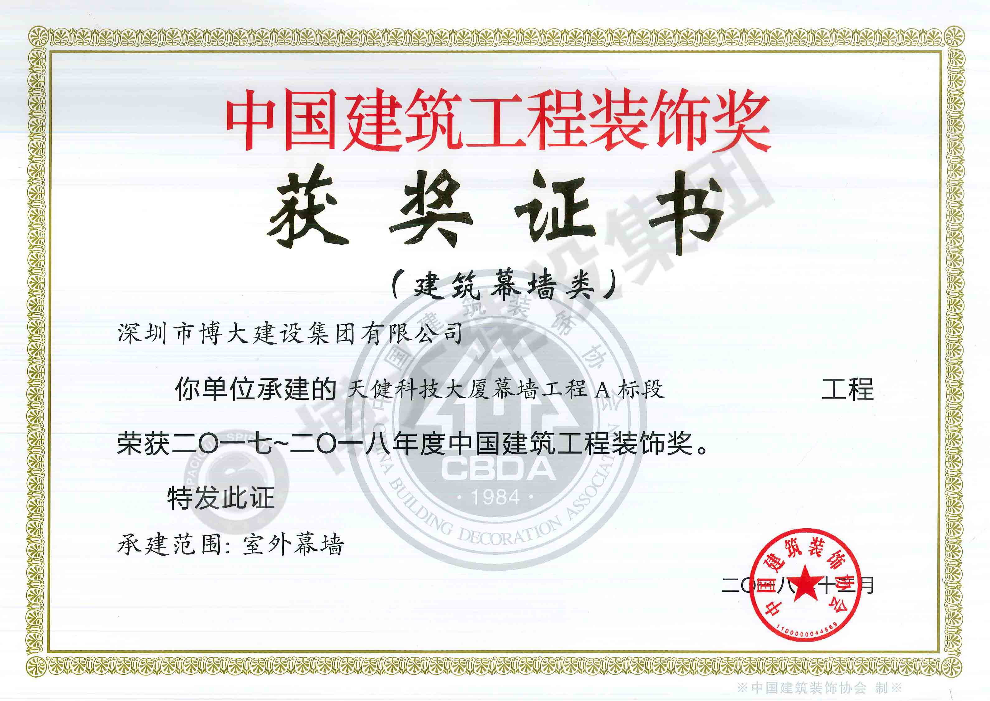 中國建筑工程裝飾獎(jiǎng)(天健科技大廈-幕墻)