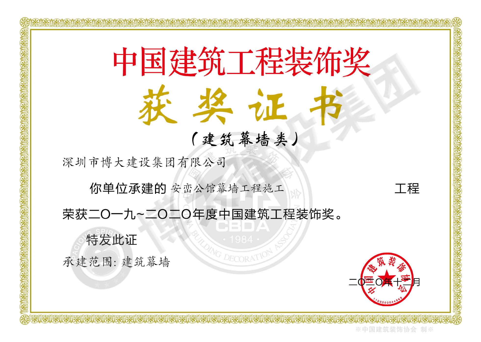 中國建筑工程裝飾獎(jiǎng)(安巒公館幕墻施工)