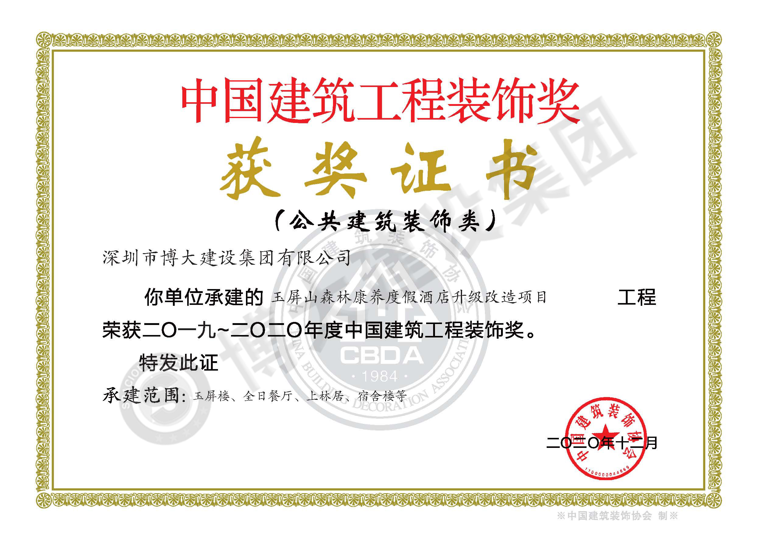中國建筑工程裝飾獎(jiǎng)(四川玉屏山康養(yǎng)度假酒店裝飾施工)