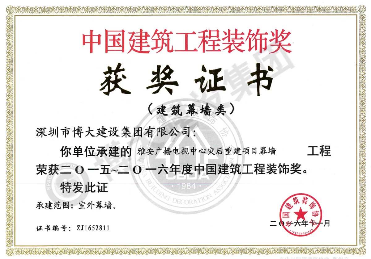 中國(guó)建筑工程裝飾獎(jiǎng)(雅安廣播電視中心災(zāi)后重建項(xiàng)目-幕墻)