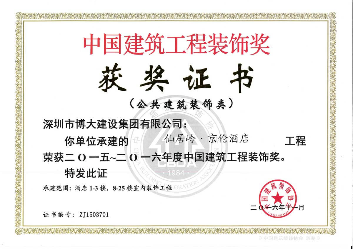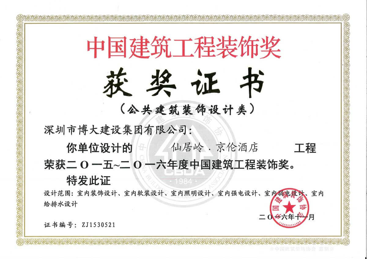 中國(guó)建筑工程裝飾獎(jiǎng)(仙居嶺.京倫酒店-設(shè)計(jì))