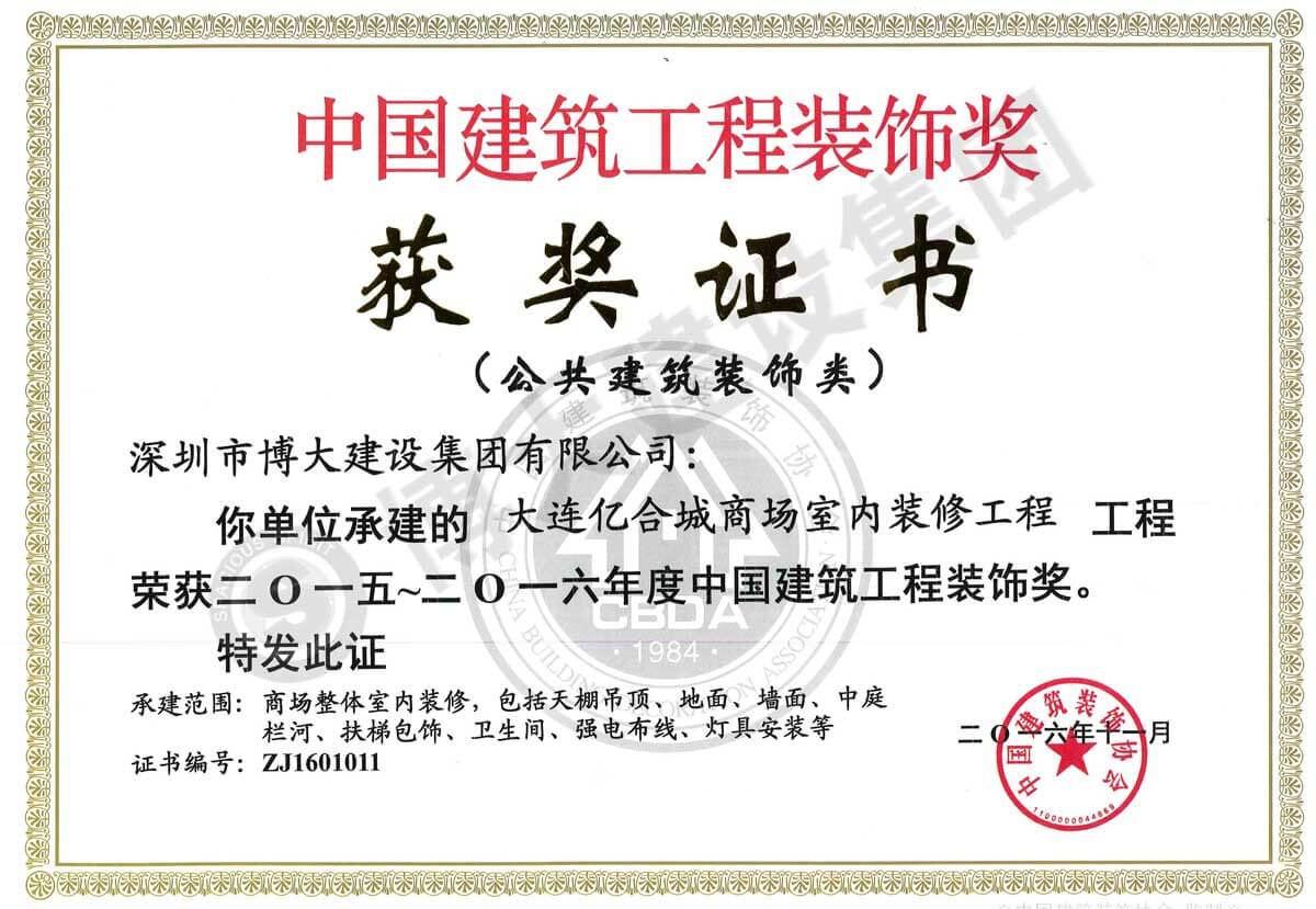 中國(guó)建筑工程裝飾獎(jiǎng)(大連億合城商場(chǎng)室內(nèi)裝修工程-裝飾)