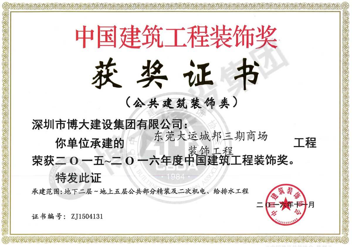 中國(guó)建筑工程裝飾獎(jiǎng)(東莞大運(yùn)城邦三期商場(chǎng)-裝飾)