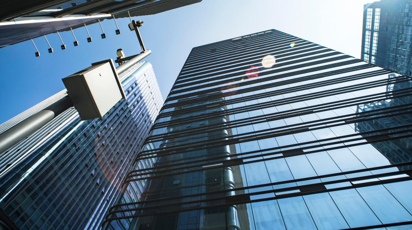 幕墻安裝形式主要為構架式,一層為全玻幕墻和鋁板幕墻,二層有玻璃雨棚,二層以上為橫明豎隱玻璃幕墻。博大使用了最新技術——彈簧銷固定橫梁系統,安裝效率提升三分之一;節能方面——在外墻玻璃上使用了雙銀LOW-E玻璃,層間使用50mm厚保溫巖棉,采用自然通風設計,最大限度節約能源;環保方面——綠化率高達30%以上,裙樓屋頂大面積綠化。