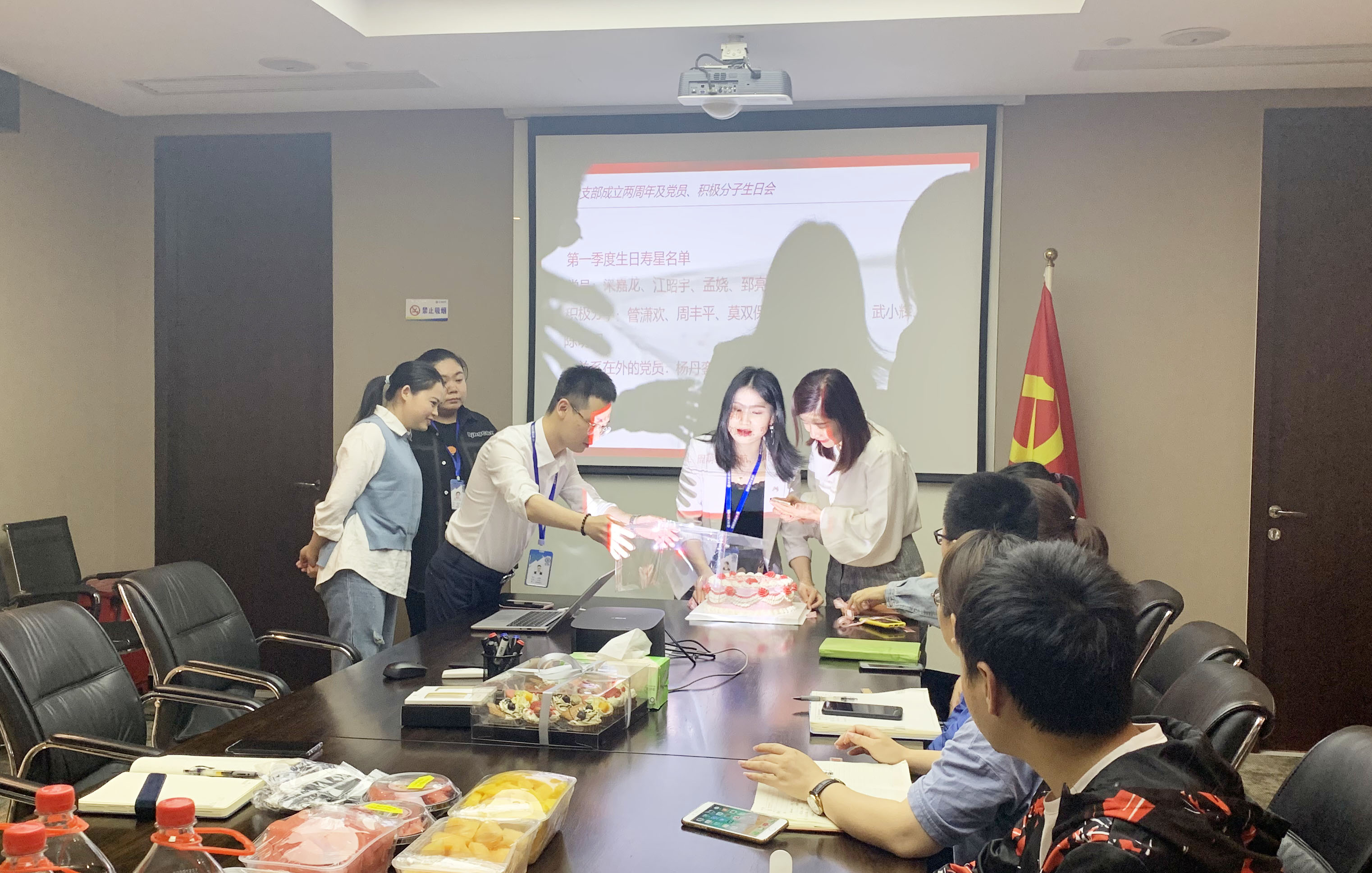 “黨支部就是我們組織生活的家,在這里讓我有了歸屬感,能參加上級黨委、公司黨支部組織的各類學習活動,認識了更多的黨員同志,我覺得很幸福!”活動的最后,黨支部準備了豐富的下午茶和蛋糕,熱烈慶祝支部成立兩周年,同時也為第一季度的黨員、積極分子慶生。