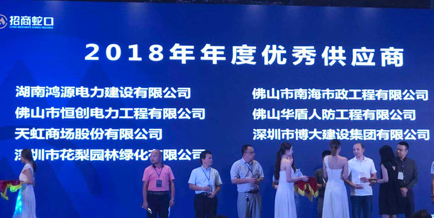 2018年9月,招商蛇口佛山公司舉行2018年度供應商大會,深圳市博大建設集團有限公司憑借過硬的工程質量、嚴格的工期保障、讓顧客有幸福感的服務態度,榮獲招商蛇口佛山公司“2018年度優秀新供應商獎”。